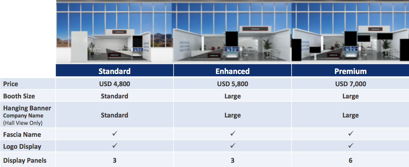 • 1 x virtual booth with 3D visuals and business tools for 6-months1. Booth materials can be refreshed and updated by the exhibitor anytime upon request